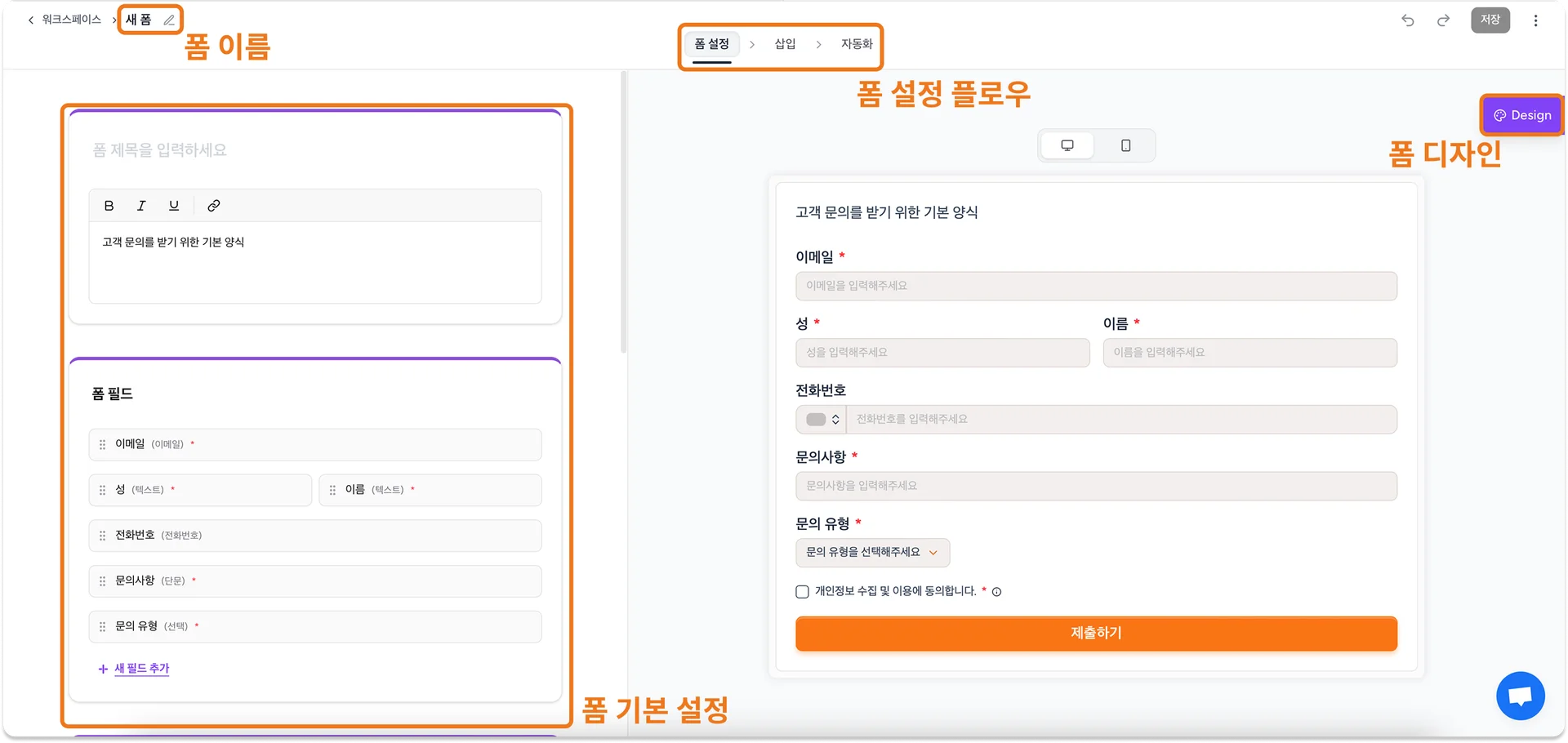 A/ 폼 기본 설정 및 디자인을 설정합니다.