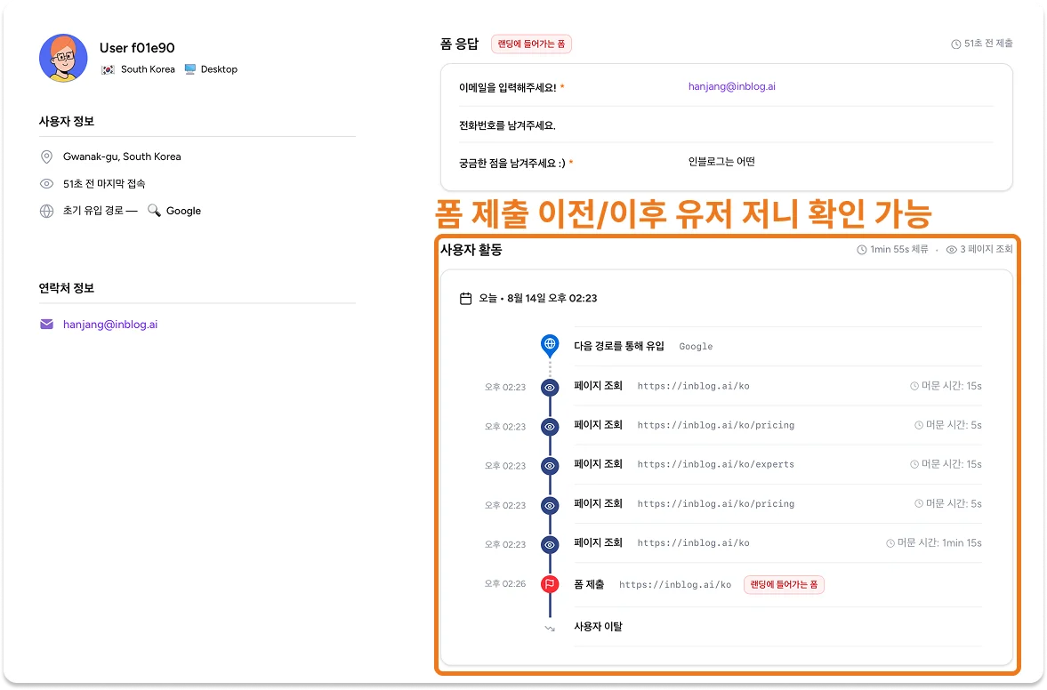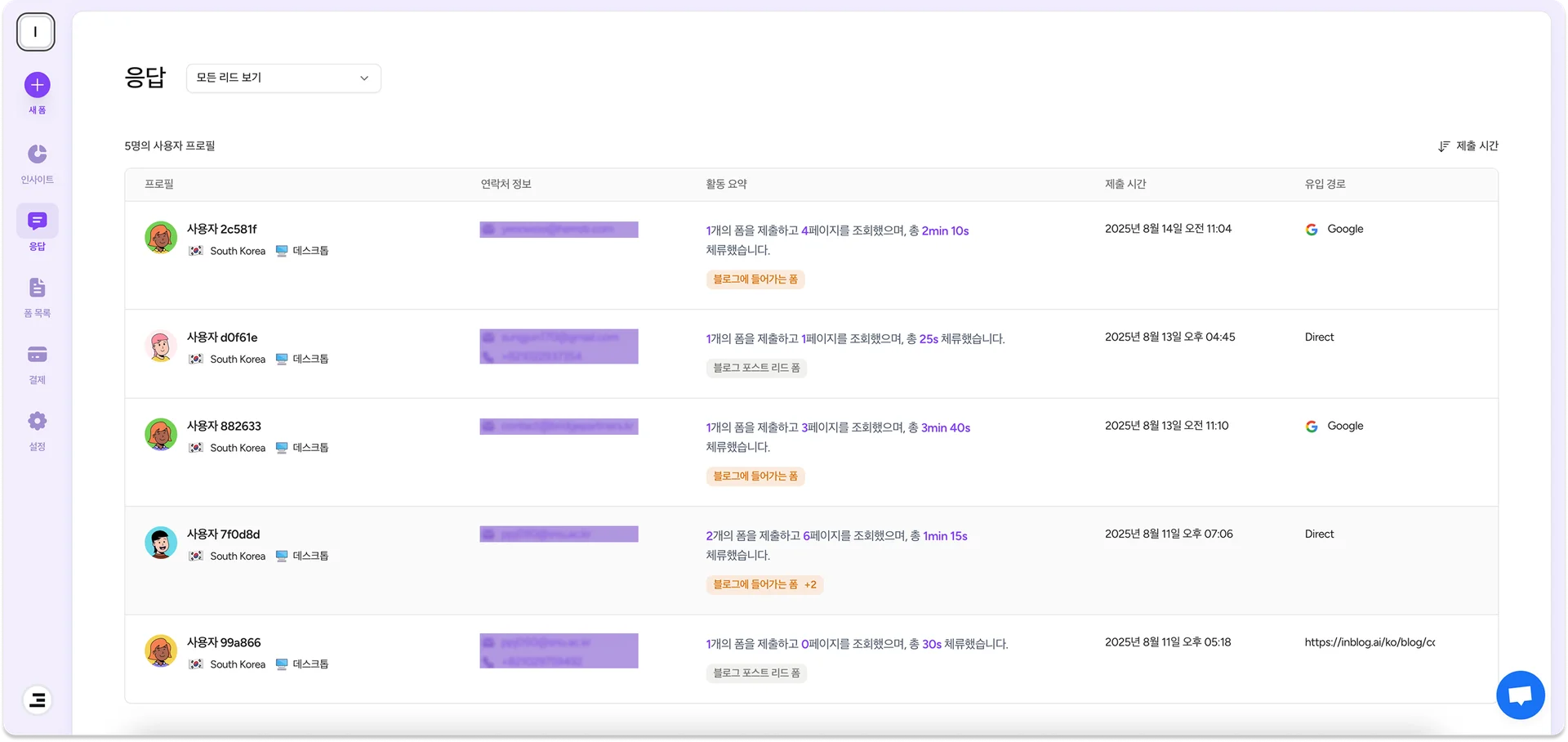 폼을 제출한 리드의 종합적인 정보를 확인할 수 있습니다.