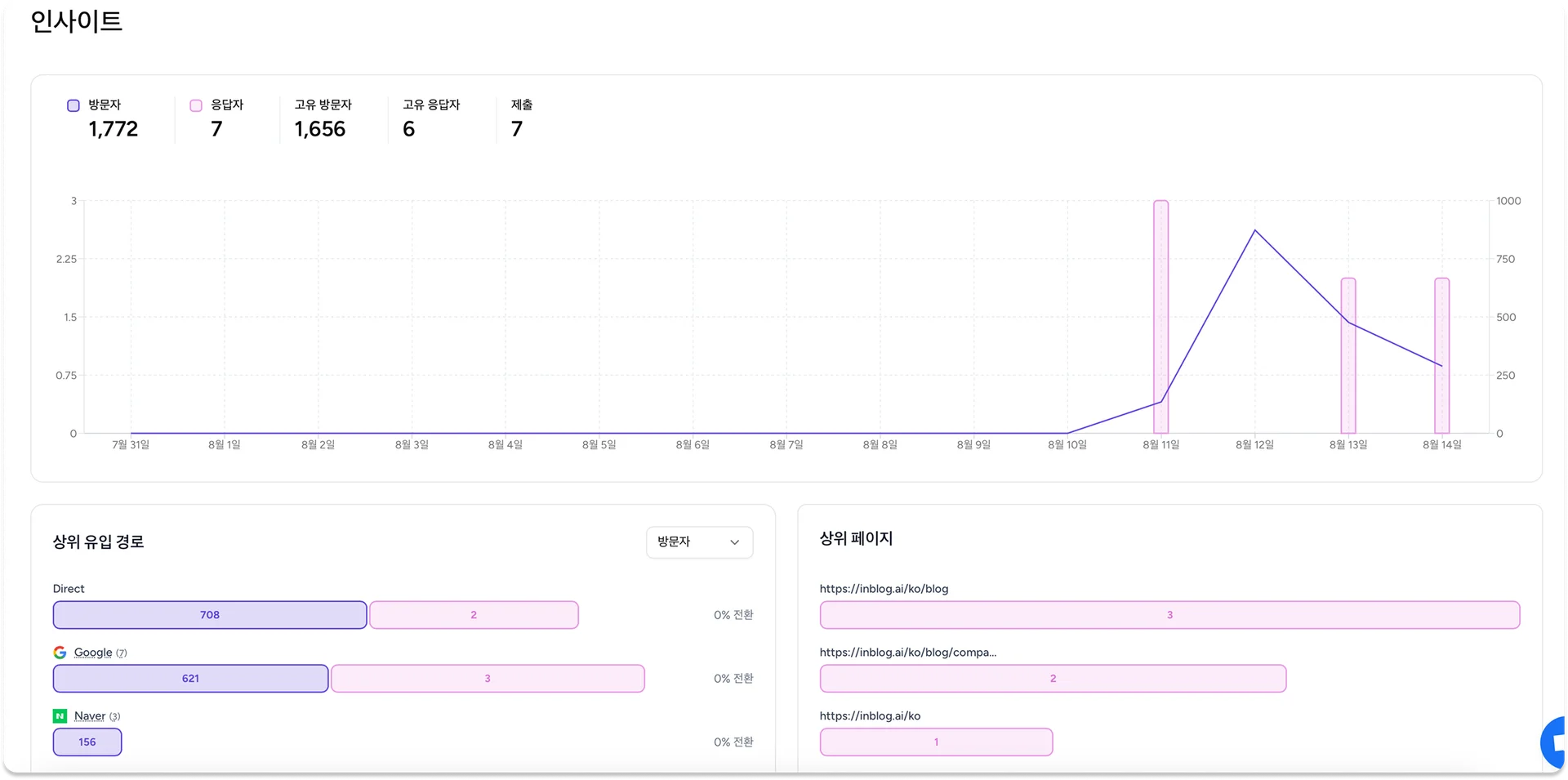 전체적인 응답자 대시보드를 살펴볼 수 있습니다.